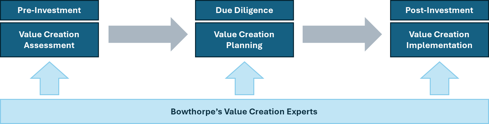 During due diligence, our experts work (at our own financial risk) with the management team to create a value creation plan